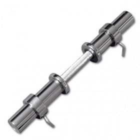 Dumbbels! Een zeer goedkope, en zeer nuttige toevoeging. Goedkoop, omdat we al schijven hebben voor de barbell. Diezelfde schijven kunnen we gebruiken om dumbbellstangen te laden tot het gewenste gewicht. Dumbbellstangen zijn verkrijgbaar in de hierboven besproken 30mm en 50mm -uitvoeringen. Zorg steeds dat de delen waarop je de schijven hangt lang genoeg zijn. Je wil ze zwaar kunnen maken zonder er schijven met een al te grote diameter aan te hangen. Zorg ook dat ze niet zo lang zijn dat het hindert.