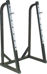 [30mm-Schijven: KOSTPRIJS: 1 - 1.5euro/kilo:] Schijven voor 30mm-barbells zijn doorgaans ofwel volledig gietijzer (wat het goedkoopste is), of hebben een dunne rubberen omhuizing. Deze behuizing zal een kleine bescherming geven tegen schade bij het laten vallen van de gewichten, maar dit gaat niet op voor hoge vallen en/of zware gewichten. [50mm-Schijven: KOSTPRIJS: 1.2 - 2euro/kilo:] Hetzelfde geldt voor 50mm-barbells. Doch is er hier voor de liefhebbers de mogelijkheid voor bumperplates. Dit zijn schijven die zo goed als volledig uit rubber bestaan, en zonder problemen kunnen vallen. Deze worden vooral gebruikt bij olympisch gewichtheffen. Ze hebben een typische kleurcodering: Rood = 25KG Het enige nadeel aan deze schijven is dat ze heel duur zijn. Als je deze schijven nog aan bovengenoemde prijzen vindt zijn het waarschijnlijk gewone schijven met een rubber laagje die gekleurd zijn in plaats van echte bumper plates. Voor een bumper plate van 15 kilo kan je al vlug 100 euro betalen. Uiteraard kan je al deze types schijven door elkaar gebruiken zolang ze maar één en dezelfde grote van boring hebben. 2. SquatrekEen squatrek is een must. Het is een metalen constructive waarop je je baar op verschillende hoogtes kan leggen. Het zal enorm hulpzaam zijn voor verschillende oefeningen (o.a uiteraard de squat). Een basis-squatrek heb je voor een honderdtal euro. Squatrekken met onderaan een safety cage dat je barbell zal opvangen als je niet meer omhoog geraakt in een zware squat komen al wat duurder uit. Heb je het geld ervoor, koop dan een squatkooi. Deze hebben safety bars die dezelfde functie hebben als de safety cage van het squatrek, maar deze kunnen op om het even welke hoogte worden ingesteld. Ideaal voor pin squats, pin presses,…
