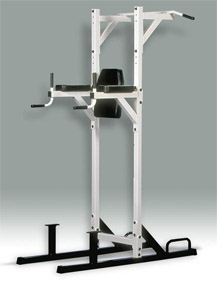 Twee zeer effectieve oefeningen, en je wil ze ergens kunnen doen. Je kan voor de duurdere optie gaan van een dip-pull-upstation, of je kan de twee grepen apart kopen en ze aan een muur bevestigen. Heb je eerder de keuze gemaakt te gaan voor een squatkooi ga je heel goedkoop er compatibele chin- en dipsteunen voor kunnen krijgen. Meestal kan je zelfs chins al standaard doen. Weer: zorg dat het stevig genoeg is. Er zijn bijvoorbeeld staven te koop die je in een deuropening kan spannen waaraan je je dan kan optrekken. Heel goedkoop, doch draagt het maar een honderdtal kilo. Als je een beetje kan optrekken ga je snel extra gewicht pakken. Hou er rekening mee! Dat, en die dingen slopen deurposten.